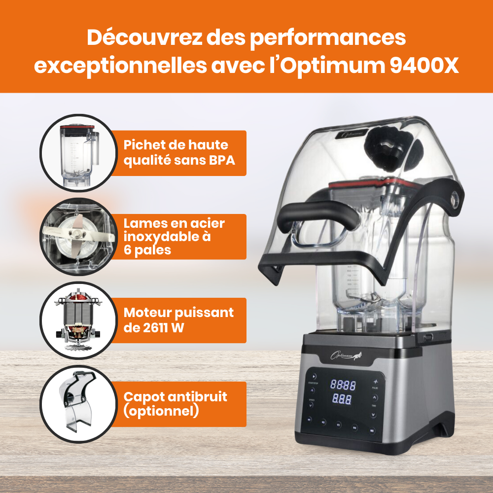 PUISSANT : Avec son moteur de 2 611 watts, l'Optimum 9400X surpasse la performance des autres mixeurs disponibles sur le marché