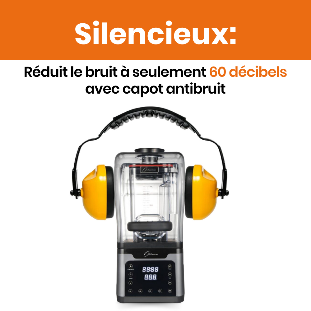 Des tests récents ont montré que le moteur du blender Optimum Vortex est nettement plus silencieux que celui de ses concurrents. Alors qu'il ne fonctionne normalement qu'à 85-90 décibels, le couvercle insonorisant en option permet de réduire le volume à seulement 60 décibels. Cela fait officiellement du Vortex Blender d'Optimum le mixeur le plus silencieux du secteur - idéal pour votre famille ou votre lieu de travail!